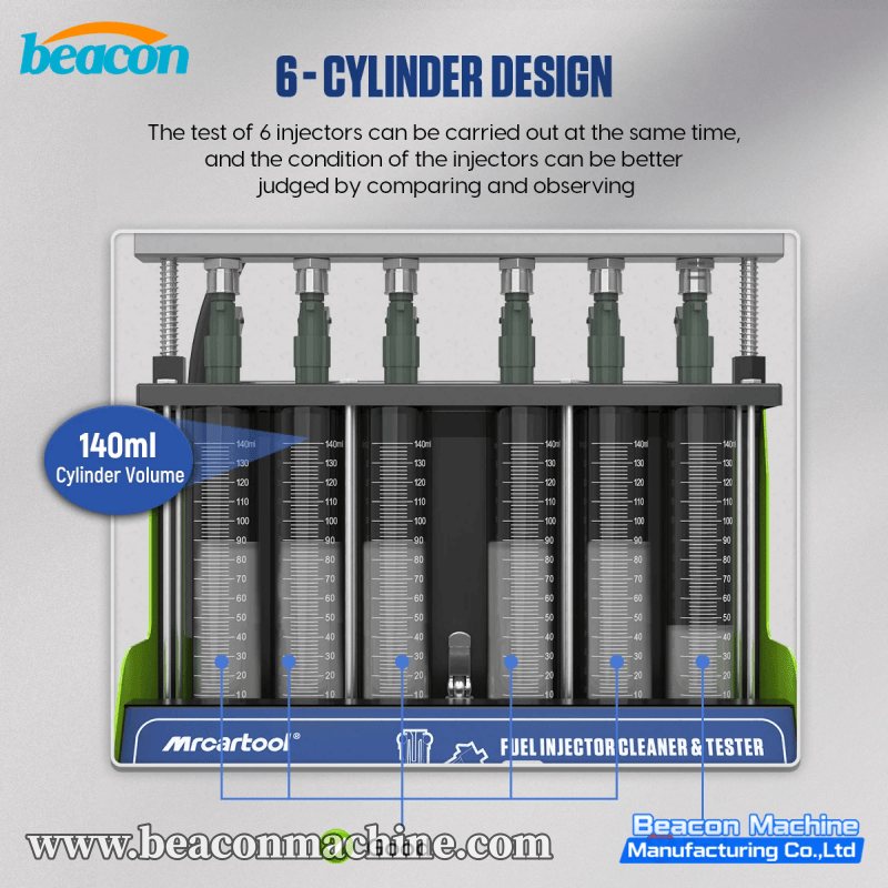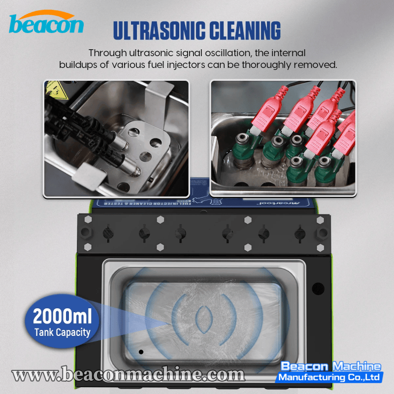 Maximized Efficiency: A larger 2000ml tank and 6-cylinder rail allow technicians to service more injectors in less time compared to 4-cylinder models.