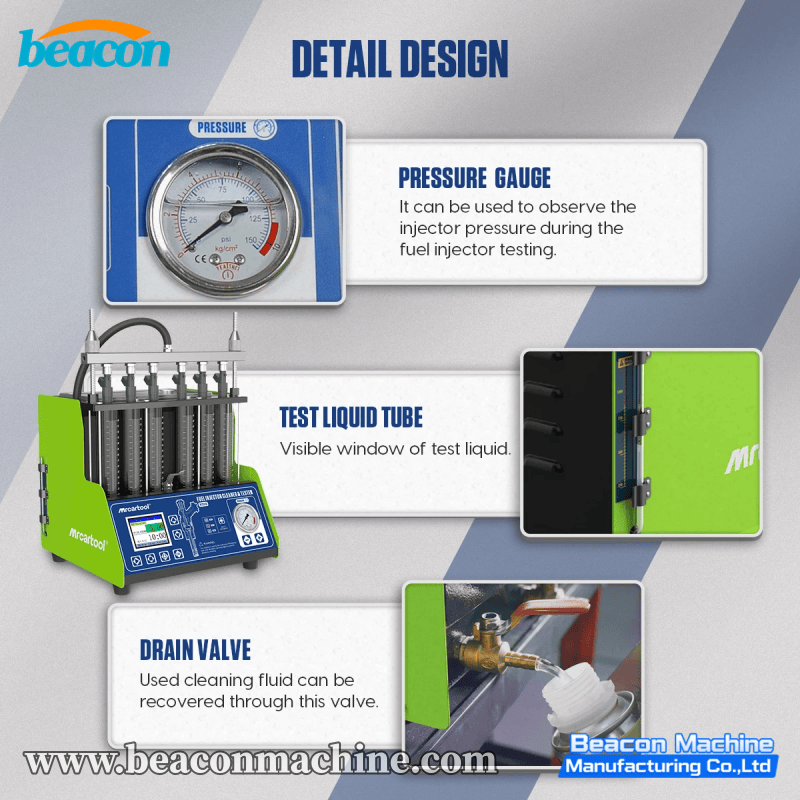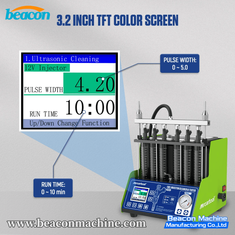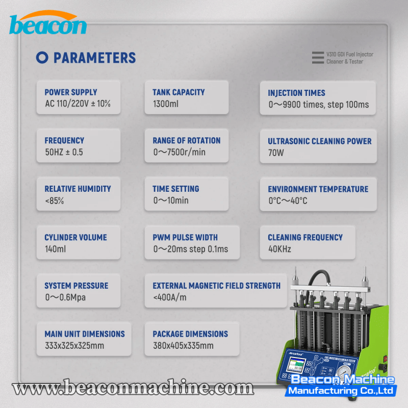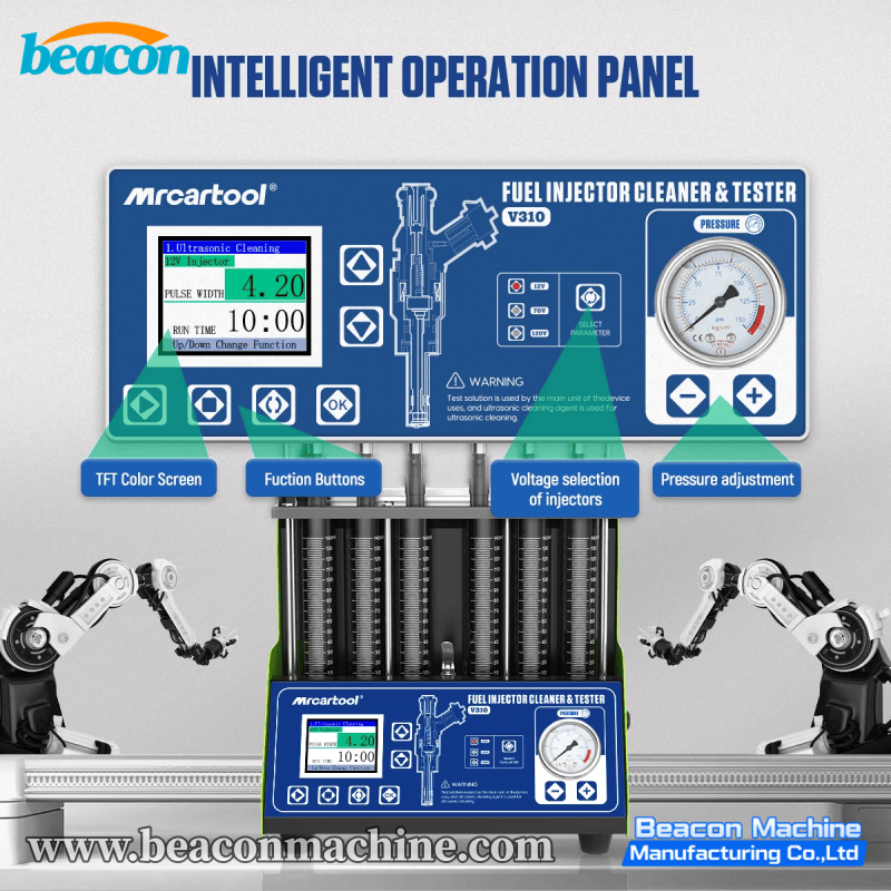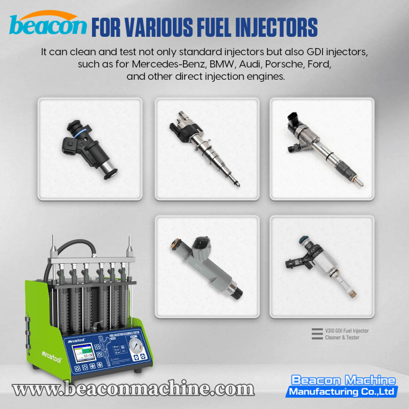 The V310 Flagship Fuel Injector Service Center combines capacity, technology, and user experience. It features a premium Large LCD Screen interface, replacing traditional button controls for a more intuitive operation experience. As a top-tier desktop unit, it supports simultaneous testing of 6 cylinders and is fully compatible with GDI technology. This machine is designed for high-end service centers that demand efficiency, visual clarity, and the ability to service larger V6 engines or multiple batches of injectors at once.